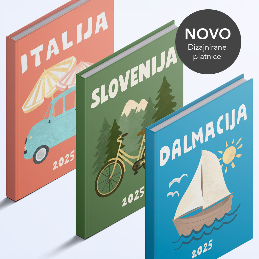 Posebnost teh platnic je, da je vsaka ročno narisana in premišljeno oblikovana. Za vsako mesto in državo smo skrbno izbrali najbolj prepoznavno znamenitost in jo pretvorili v ilustracijo, ki takoj pove – to je Split, to je Dubrovnik, to je Italija. Na platnicah boste prepoznali vse od Dioklecijanove palače in dubrovniških zidov do puljske arene in dalmatinskih jadrnic.