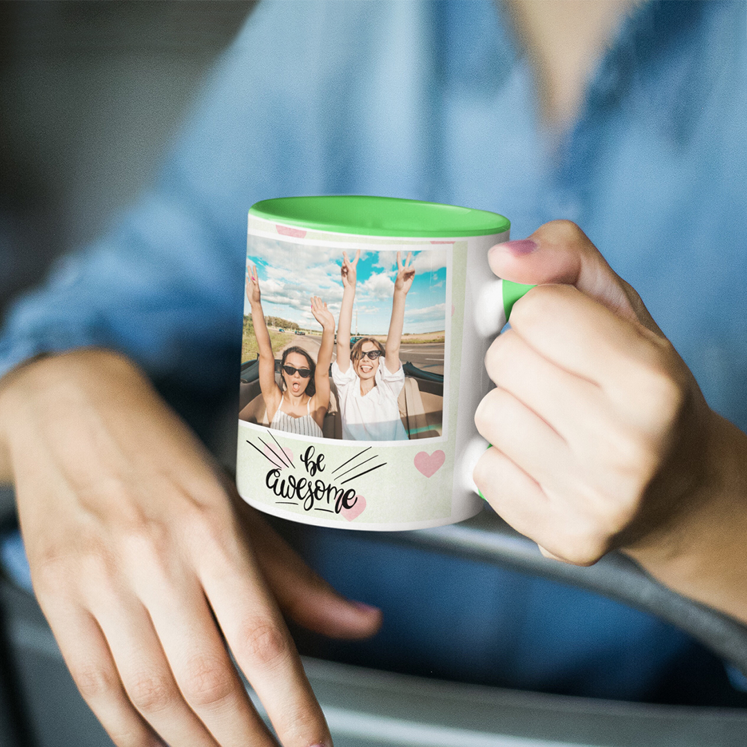 Kombinirajte fotografije z veselimi barvami za notranjost skodelic.